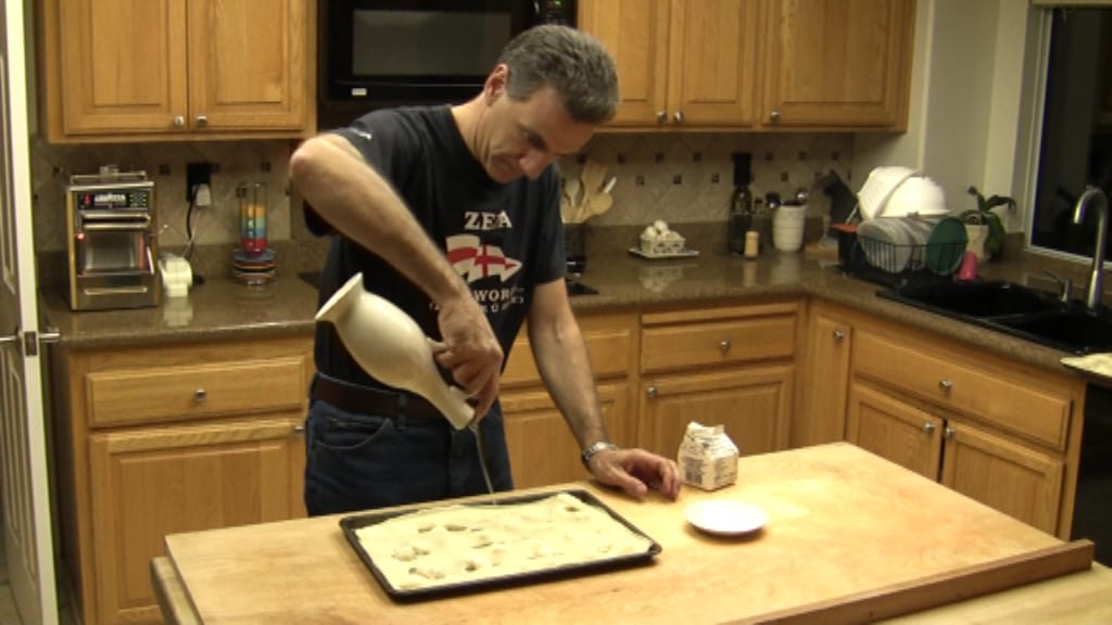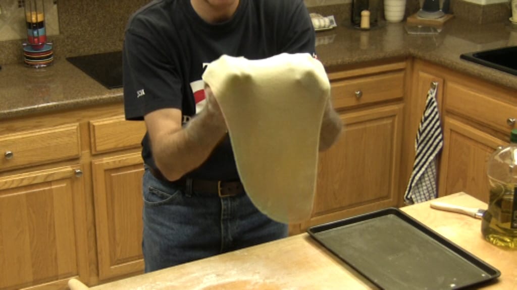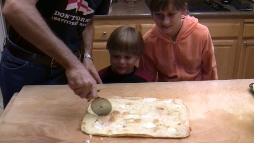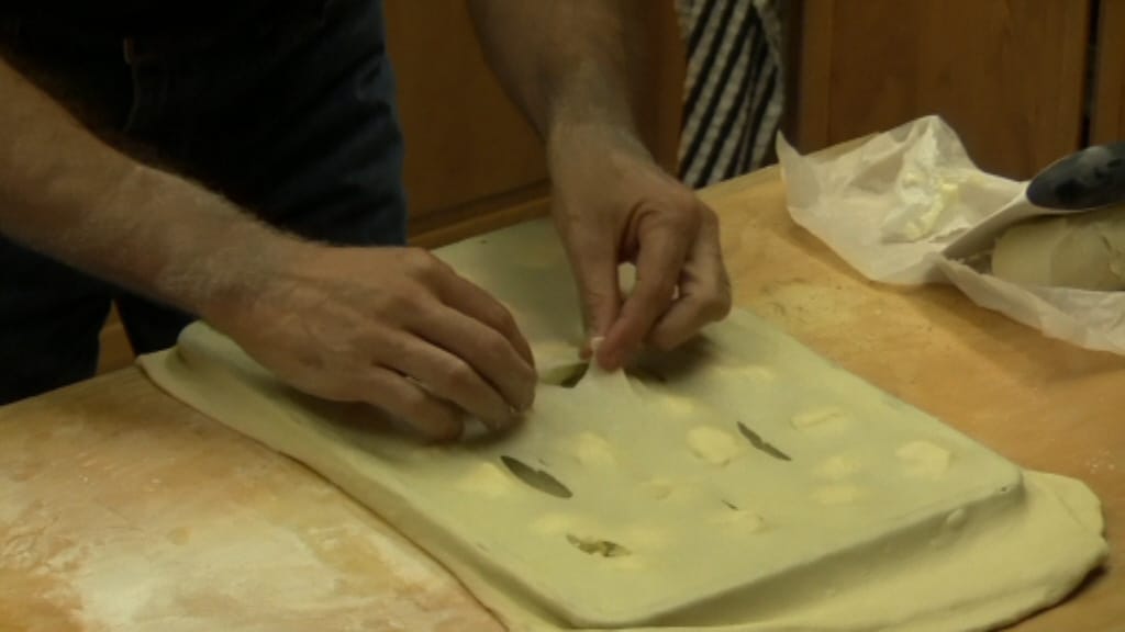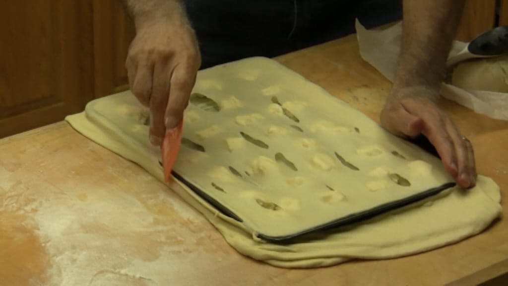 Ecco il video che spiega passo passo come preparare la Focaccia col formaggio di Recco. Osservate come manipolare la pasta per ottenere due strati sottilissimi.