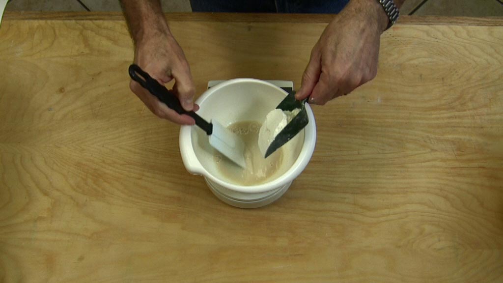 Ricetta Pandoro Semplice Sciogliete il lievito nell'acqua a 30°C Aggiungete tre quarti della farina Mischiate con una spatola