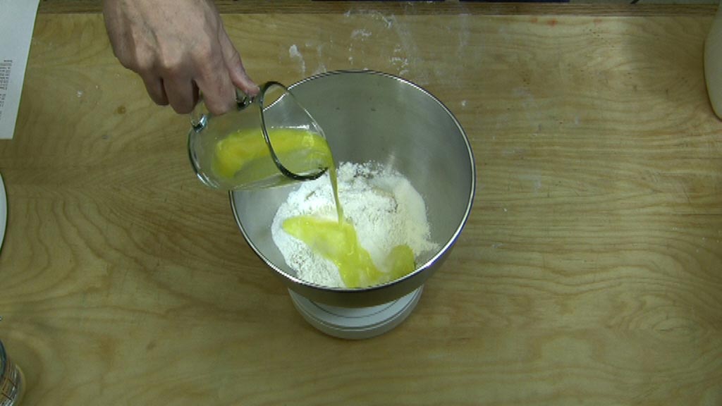 Ricetta Pandoro Semplice Aggiungete la farina, lo zucchero e meta' delle uova