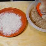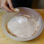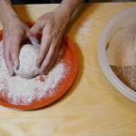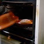 Tratto dal libro “The New Artisan Bread in Five Minutes a Day“, questi tipi di pane non richiedono impastatrice o lavorazione complicata. Si mettono insieme gli ingredienti mischiandoli per poco più di un minuto, si lascia lievitare per un paio di ore, poi si mette in frigo fino anche a 7 giorni a 5c. La ricetta è stata variata leggermente per la versione integrale allungando leggermente i tempi di cottura ed utilizzando il Cuoci Pane di VivaLaFocaccia realizzato in collaborazione con Mazzotti Ceramiche di Albisola.