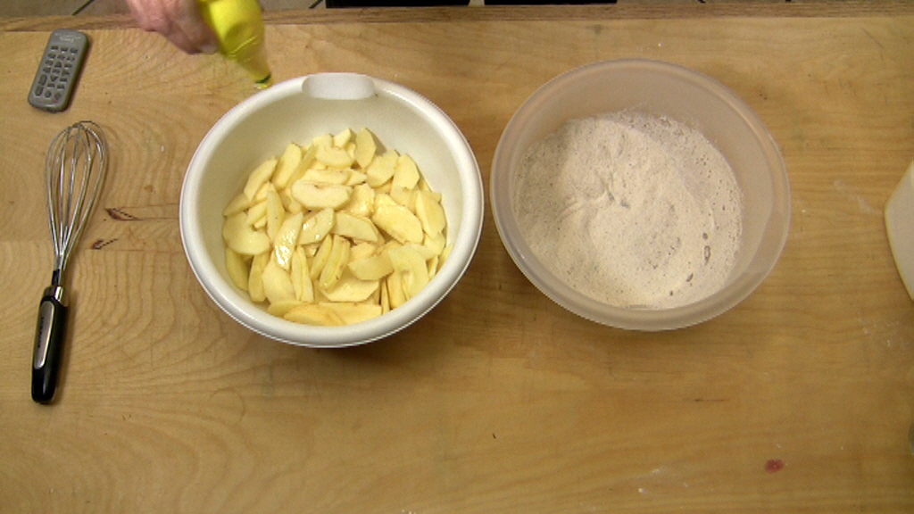 Lo versi sulle mele, dopo aver rimescolato. ho sistemato la ricetta.