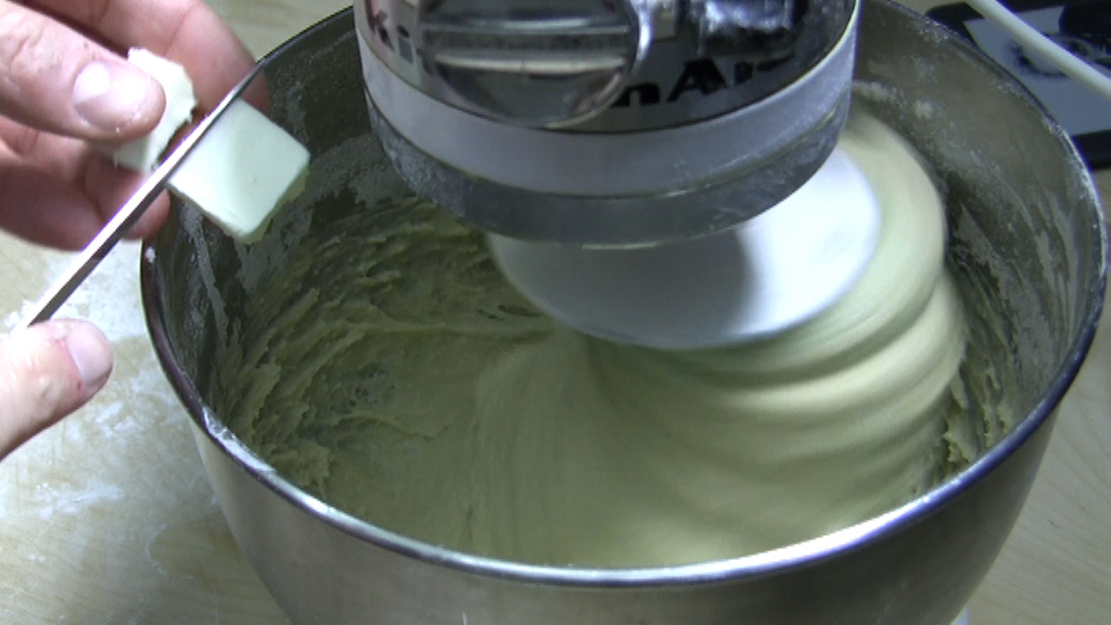 Aggiungete il burro dell'impasto principale (75g) a piccoli pezzi, a temperatura ambiente e poco alla volta