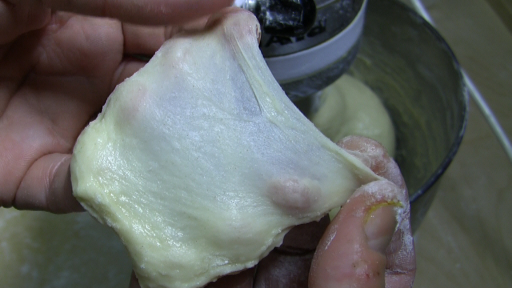 Se il glutine e' sviluppato al punto giusto, dovreste riuscire ad ottenere una pasta sottilissima semplicemente allargandola delicatamente con le dita (come si vede nel video)