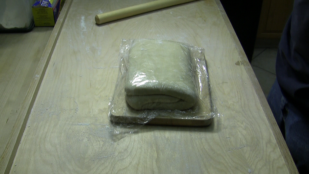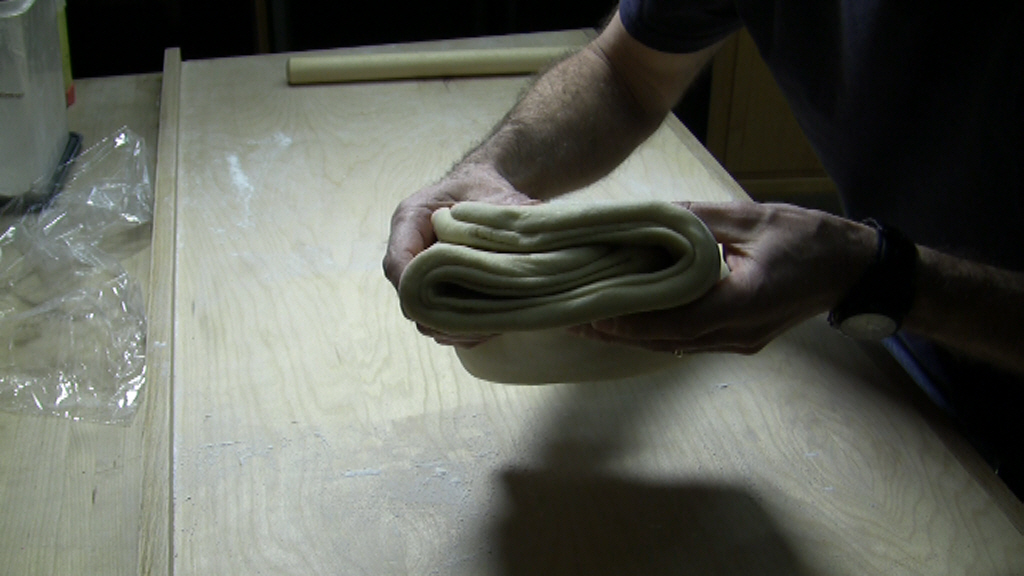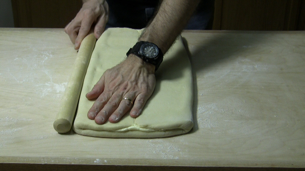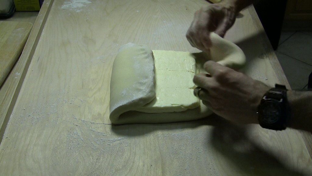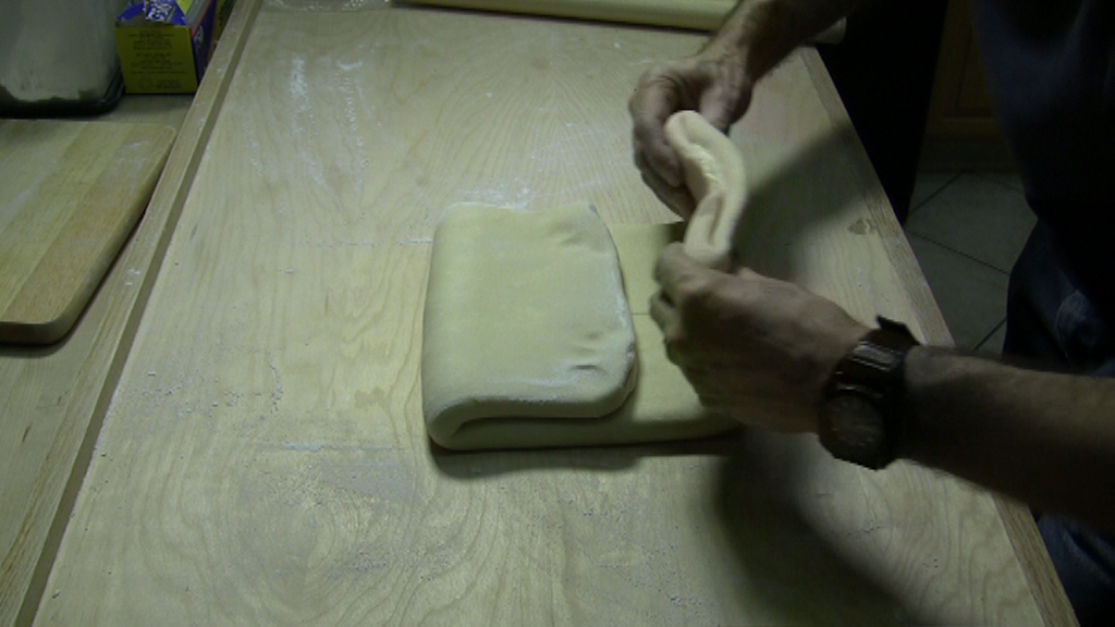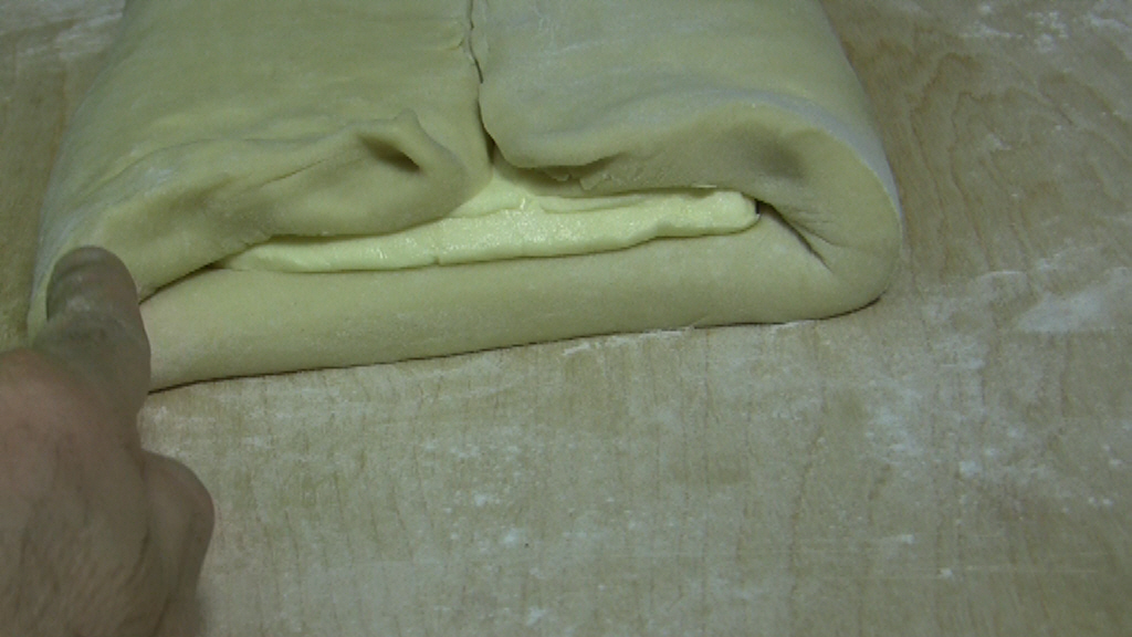 Ripetete il procedimento per la seconda piega.Dopo questo passaggio, la sfoglia avrà 27 strati di burro e pasta.Mettete in frigo a riposare per 60 minuti