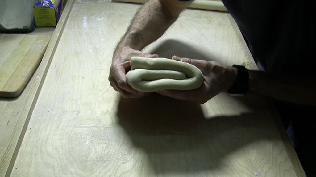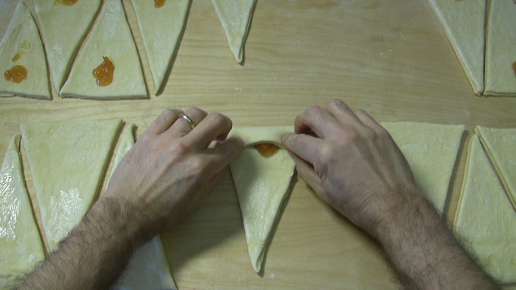 Piegate i due lembi di pasta su se stessi verso l'esterno (guardate bene il video)