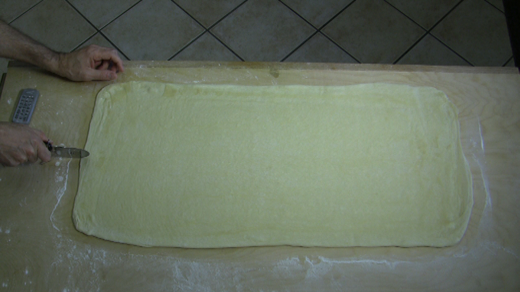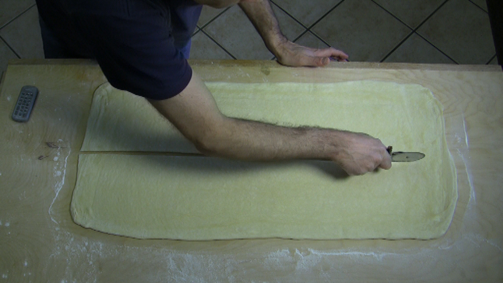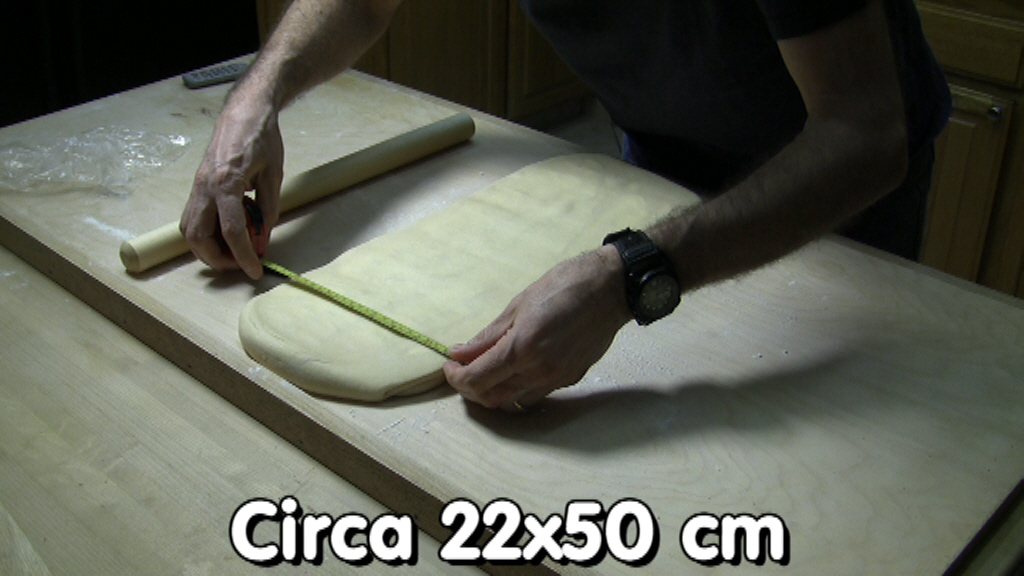 Continuate a stendere la sfoglia fino ad ottenere un rettangolo di circa 38x80 spesso 8 mm