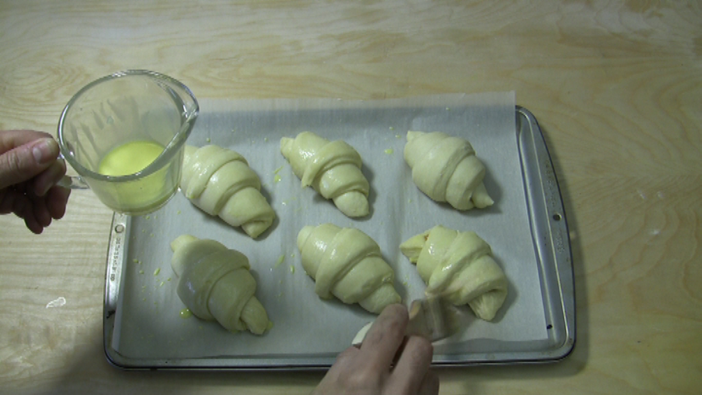 Spennellate la superficie con una miscela di rosso d'uovo e acqua Siate molto delicati in modo da non rovinare la lievitazione