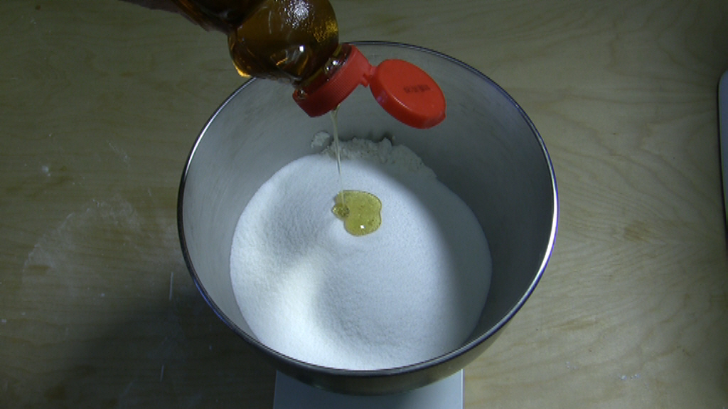 Preparate farina, zucchero, malto (o miele) e aggiungete la vaniglia (bacca o aroma)