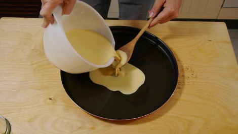 Il nostro intento è stato quindi di cercare di rendere accessibile in casa e anche a chi non ha questo tipo di tegami una farinata con queste caratteristiche e il più simile possibile a quella che si trova a Genova.