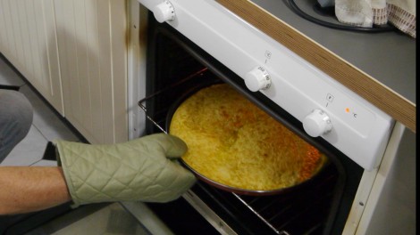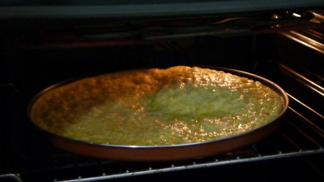 Per render più semplice tutto ciò nel forno di casa abbiamo usato un tegame tondo, antiaderente per simulare la stagnatura e la cottura solo dall’alto …quindi il solo grill.