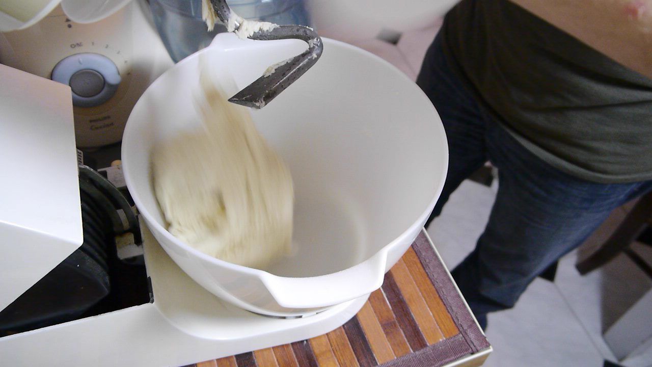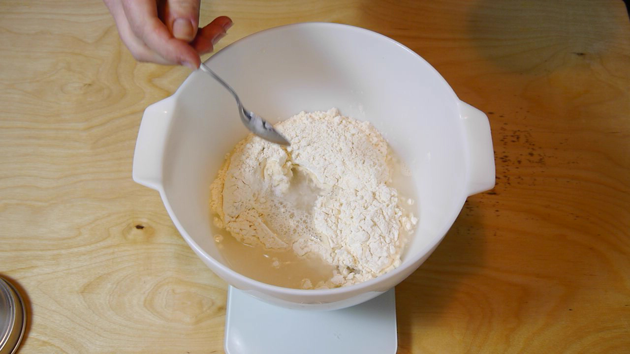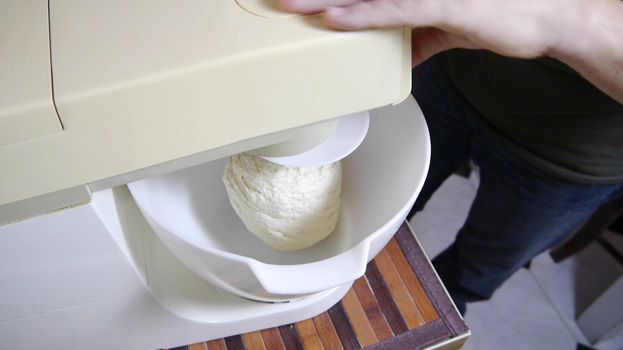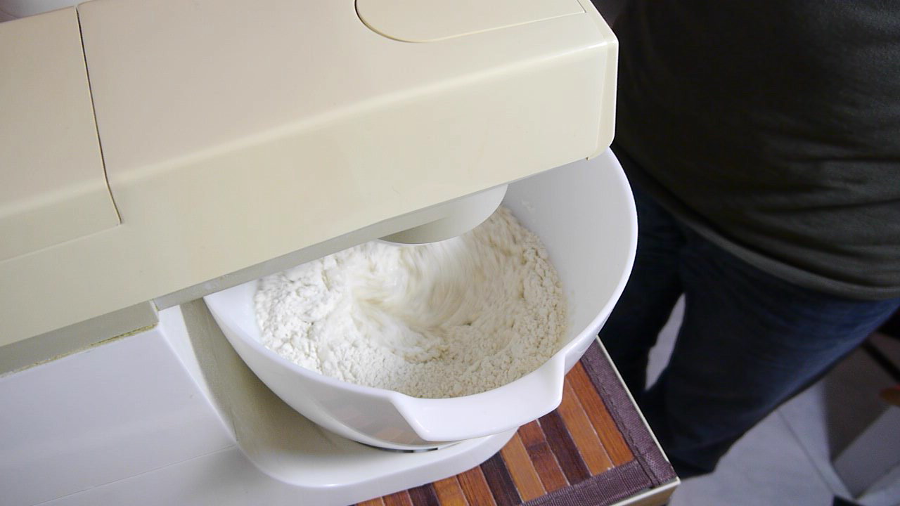 Ho provato diverse volte e diverse soluzioni prima di fare il video. Bertinet consiglia l’utilizzo di una farina forte ma senza specificare quanto e usando la manitoba sebbene soddisfatto del risultato nell’immediato dopo qualche ora il pane diventava troppo elastico. Utilizzando una farina 0 per pane e pizza invece ho avuto il problema dell’idratazione che avrei potuto risolvere con tempi di impasto più lunghi di quelli consigliati dalla ricetta originale ma