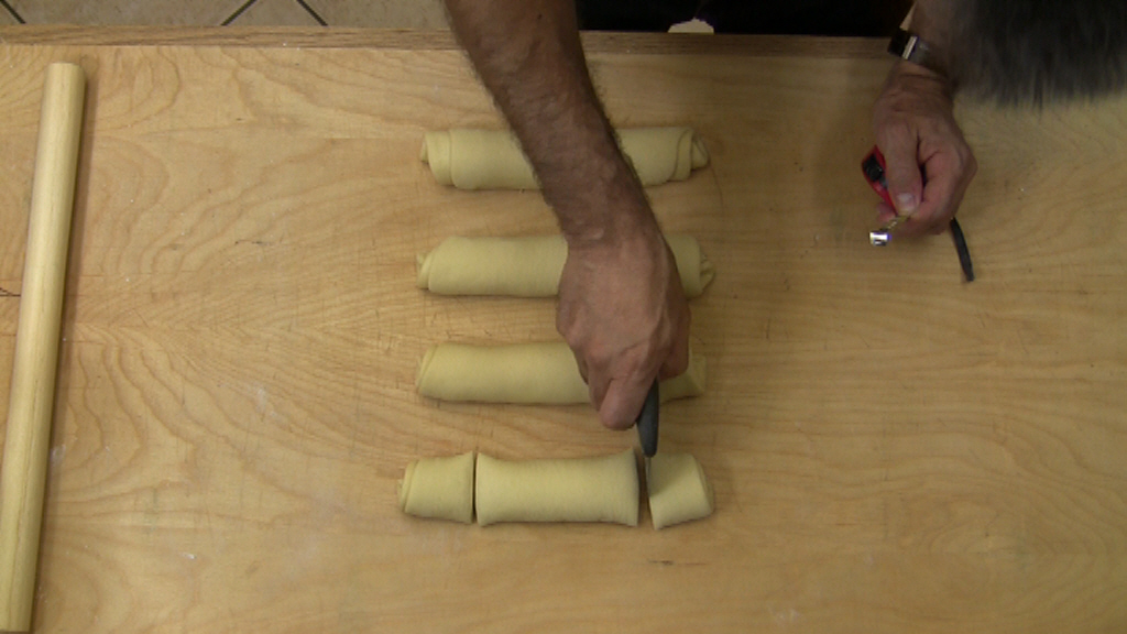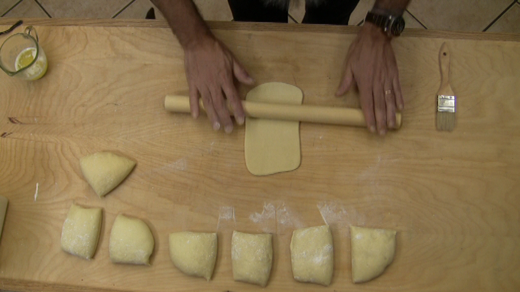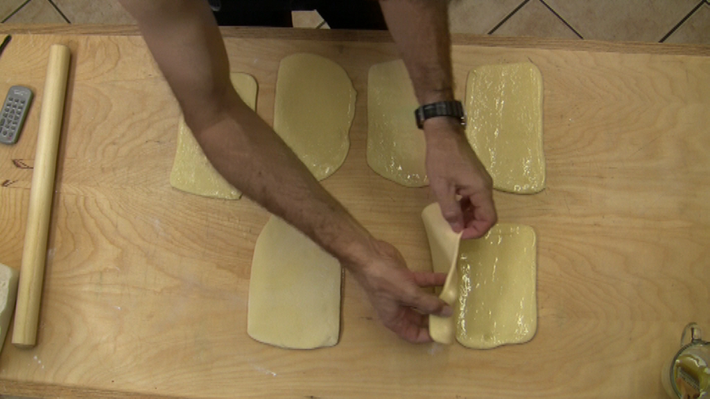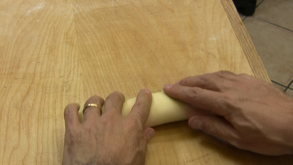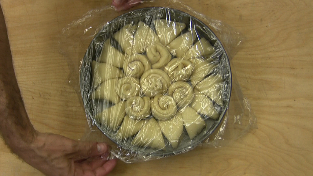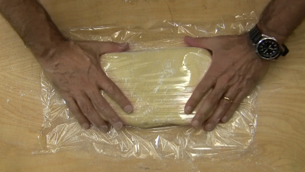 Spolverate di farina sopra e sotto, coprite con pellicola trasparente e poi con un panno