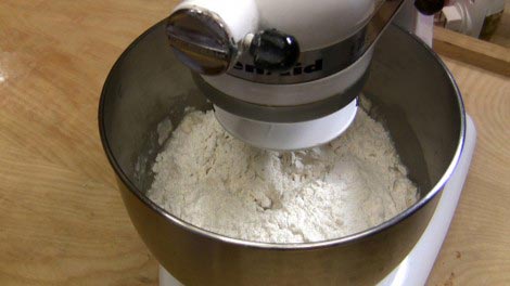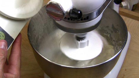 - Dopo 4-5 minuti, fermate l’impastatrice, rovesciate la pasta su se stessa e raschiate la pasta dalla parete dell’impastatrice. Questo procedimento facilita ed accelera lo sviluppo del glutine che darà elasticità alla pasta e migliorerà la lievitazione