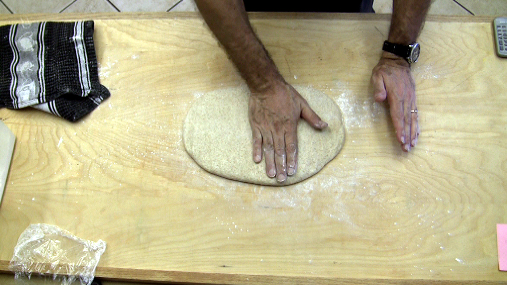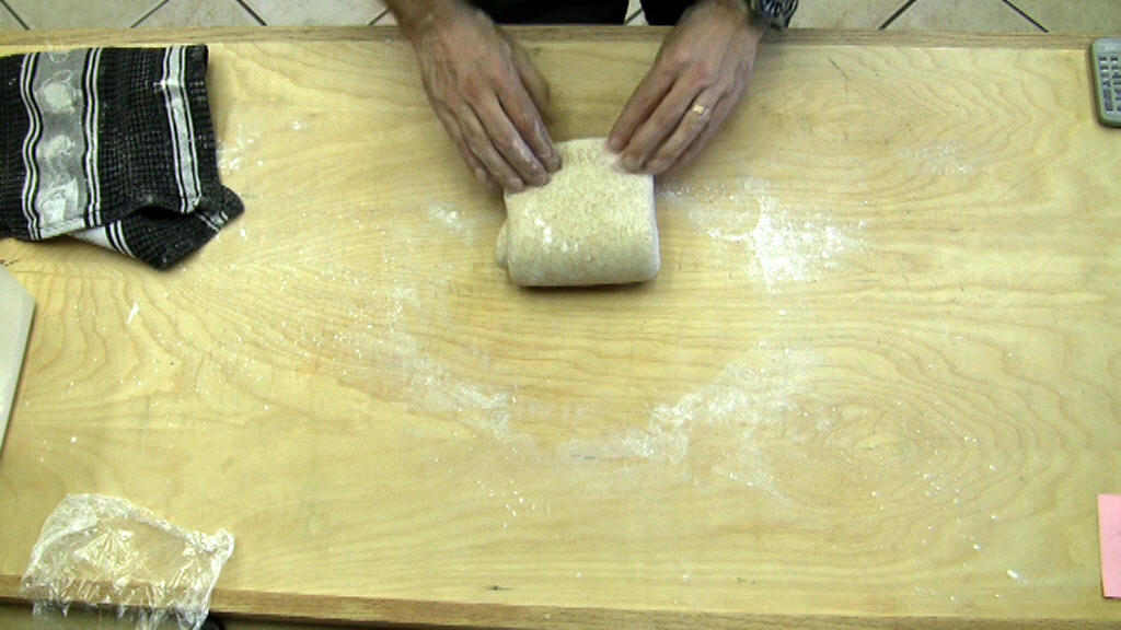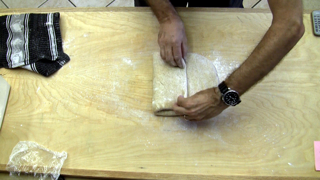 - Schiacciate di nuovo con le mani e piegate la pasta in due