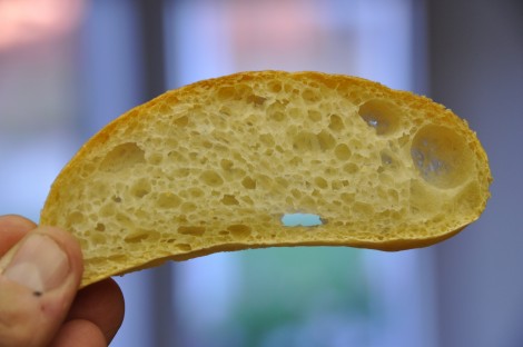 Il trucco sta nell’usare farine forti, impasti molti idratati e tempi di lievitazione lunghi come spiegato in questa puntata di VivaLaFocaccia TV e come si vede nella ricetta delle ciabatte da paninoche trovate cliccando qui.
