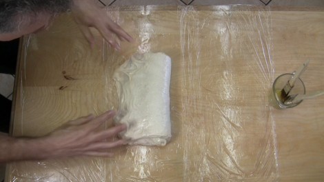 Il metodo “no knead” (senza impasto) si basa sul principio dello sviluppo del glutine nella farina tramite lunghe lievitazioni con pochissimo lievito ed impasto molto idratato. Invece di usare l’impastatrice o le mani per rafforzare la pasta, si lascia che il tempo faccia il lavoro per noi. I risultati sono sbalorditivi, ma ci vuole pazienza. Trovate altre ricette semplici senza l’uso dell’impastatrice nella sezione ricette facili di quest’altra pagina.