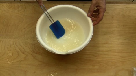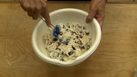 Mischiate gli ingredienti fino a quando la farina e' assorbita, piu' o meno un minuto. La caratteristica di queste ricette "no knead' (senza impasto) sta nel fatto che non serve impastare a lungo.