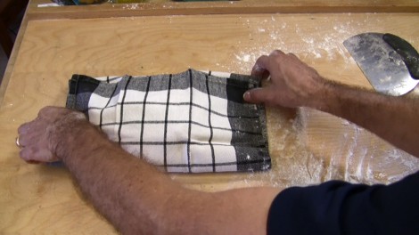 Cospargete un telo di faina, e farina di granoturco o altre farine a piacere