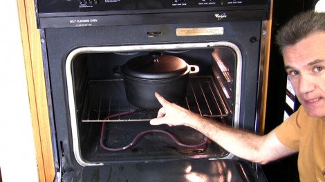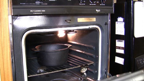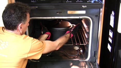 E’ semplicissimo ed il risultato e’ favoloso. Dovete solo procurarvi una pentola di ghisa con il coperchio (o di terracotta resistente al calore). La mia e’ 25 cm di diametro e 14 cm di altezza.