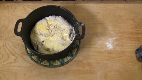 Rovesciate la pagnotta dentro la pentola calda con il seme sopra.