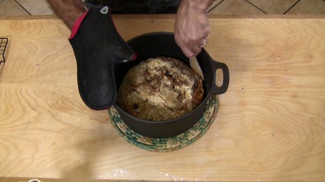 Tirate fuori la pagnotta dalla pentola e mettetela a raffreddare su una griglia in modo che possa passare aria anche sotto e non si formi condensa