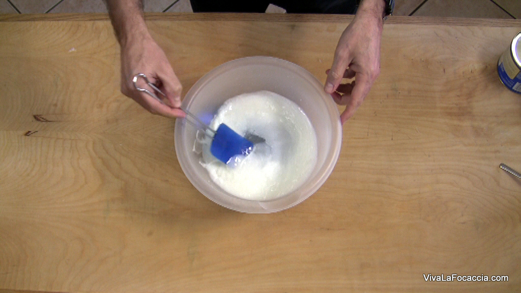Ho deciso di usare metà acqua e metà latte, un po’ di bicarbonato e lo strutto. Se la volete più leggera, potete utilizzare l’olio nella quantità indicata qui sotto.
