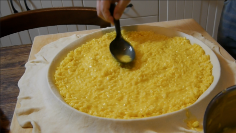 Ma veniamo alla Ricetta della torta di Riso di cui conosco 2 versioni, una più ricca nel ripieno ed una un po più semplice che è quella da cui partiremo.